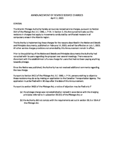 ANNOUNCEMENT OF REVISED SERVICE CHARGES – CERTIFICATE (JULY 1 2023)